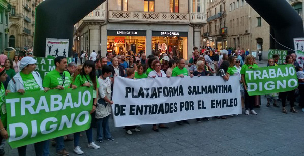 El Servicio de Empleo de COCEMFE en Salamanca ha participado en la Plaza Mayor de la ciudad en una cadena humana, la cual, estuvo organizada por la Plataforma Salmantina de Entidades por el Empleo para simbolizar la fuerza de la unión para conseguir empleos dignos.