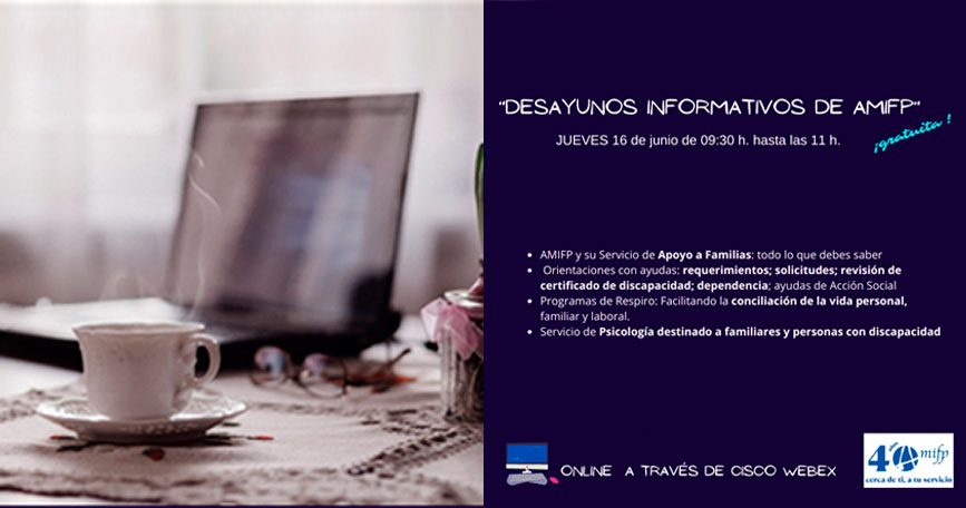 La Asociación a favor de personas con discapacidad de la Policía Nacional (AMIFP), entidad perteneciente a COCEMFE, organiza desayunos informativos online para dar a conocer toda la información sobre los servicios de orientación que la entidad presta a personas con discapacidad y sus familias.