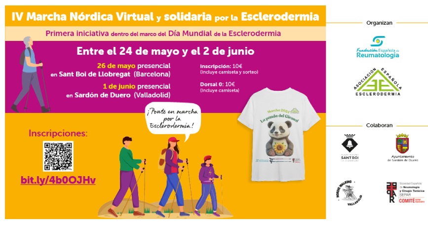 La Asociación Española de Esclerodermia (AEE), entidad perteneciente a COCEMFE, celebra la cuarta edición de la ‘Marcha Nórdica Virtual y Solidaria por la Esclerodermia’, con motivo del Día Mundial de la Esclerodermia. En este sentido, la ‘marcha’ tendrá lugar a nivel nacional y se llevará a cabo desde el viernes 24 de mayo hasta el domingo 2 de junio.