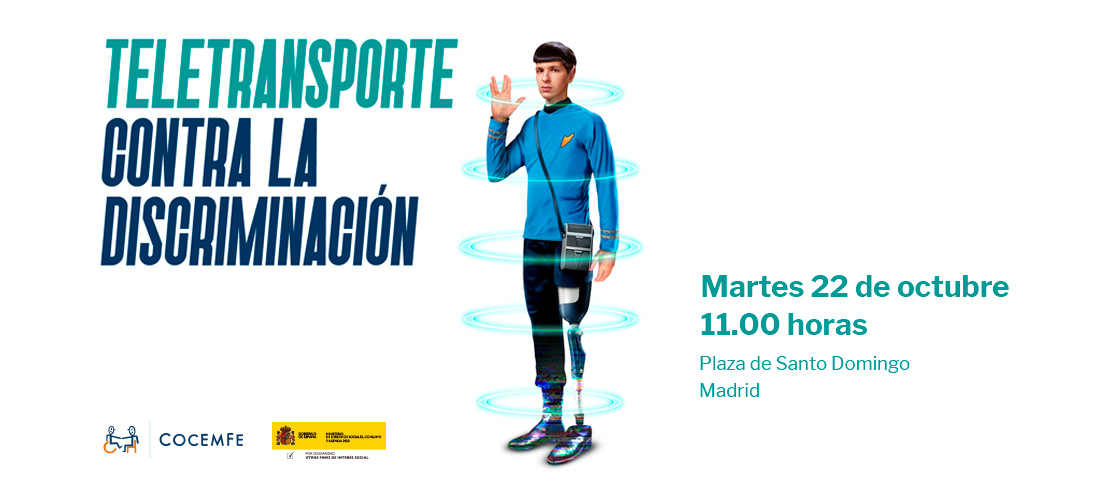 La Confederación Española de Personas con Discapacidad Física y Orgánica (COCEMFE) reivindicará un transporte sin barreras el próximo 22 de octubre a las 11.00 horas en la Plaza de Santo Domingo de Madrid, en un teletransportador y vestidos de Star Trek.