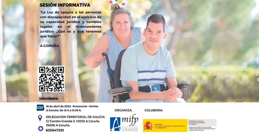 La Asociación a favor de personas con discapacidad de la Policía Nacional (AMIFP), entidad perteneciente a COCEMFE, celebra el próximo martes, 18 de abril, una sesión informativa titulada ‘La Ley de apoyos a las personas con discapacidad en el ejercicio de su capacidad jurídica y cambios legales en el ordenamiento jurídico: ¿Qué es y qué tenemos que hacer?’.