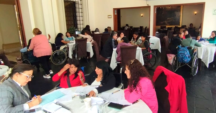 La primera jornada de trabajo se realizó entre las organizaciones de personas con discapacidad, organismos de derechos humanos e instituciones del Estado y de la cooperación internacional, con el objetivo de proponer soluciones a la situación que viven las mujeres con discapacidad durante los desastres naturales en Perú.