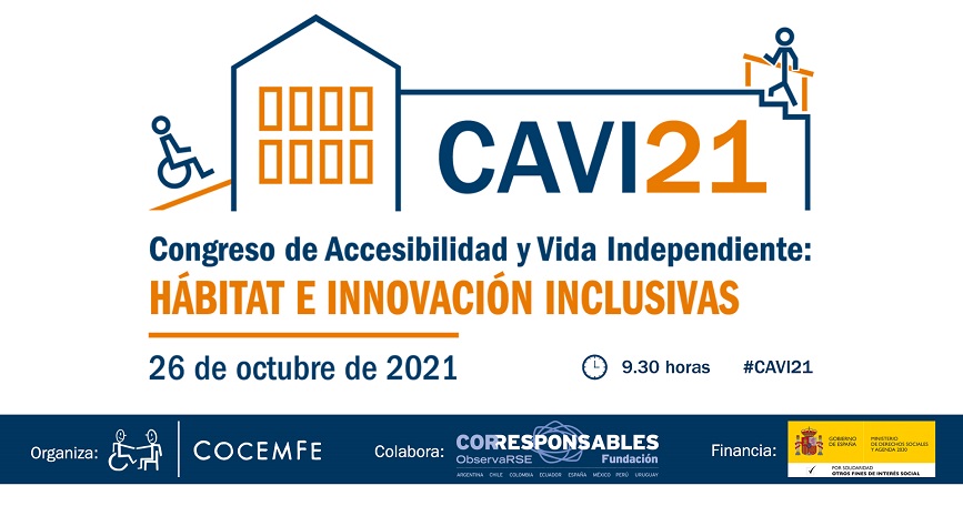 La Confederación Española de Personas con Discapacidad Física y Orgánica (COCEMFE) celebrará mañana, martes 26 de octubre, el Congreso de Accesibilidad y Vida Independiente: Hábitat e Innovación Inclusivas (CAVI21) con el que pretende crear un espacio común de conocimiento de carácter científico en torno a la vida independiente de las personas con discapacidad física y orgánica y podrá seguirse en este enlace.