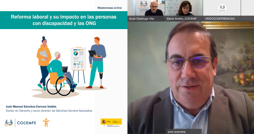 La Confederación Española de Personas con Discapacidad Física y Orgánica (COCEMFE) ha celebrado este lunes, con la colaboración de Sánchez-Cervera Asociados, la masterclass ‘Reforma laboral y su impacto en las personas con discapacidad y las ONG’, contando con la asistencia de más de 500 personas a través de su emisión, en directo y subtitulada, en el canal de COCEMFE en YouTube.