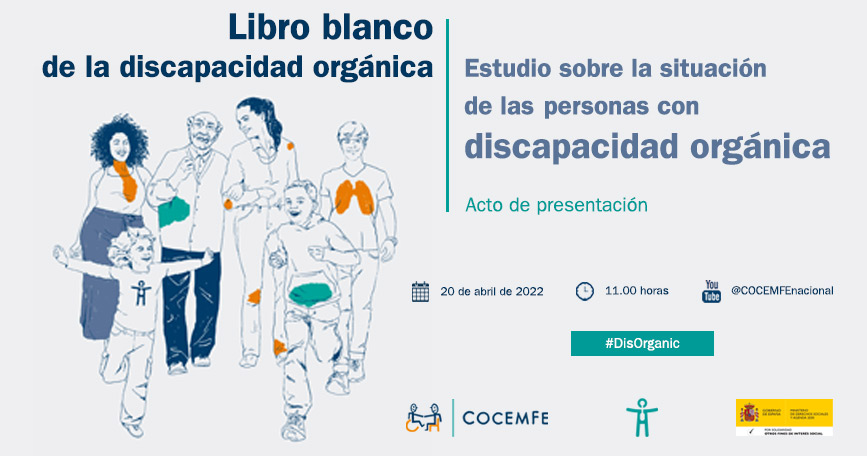 La Confederación Española de Personas con Discapacidad Física y Orgánica (COCEMFE) presentará el próximo miércoles 20 de abril el ‘Libro Blanco de la discapacidad orgánica. Estudio sobre la situación de las personas con discapacidad orgánica’ en un evento online que contará con subtitulado.