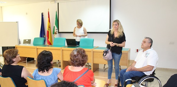 La trabajadora social Marina Hidalgo y el presidente de FAMS-COCEMFE Sevilla, Juan José Lara, presentaron las líneas de actuación de la entidad en ámbitos rurales y destacaron la importancia del asociacionismo a casi medio centenar de personas con y sin discapacidad, las cuales, tienen necesidades e inquietudes y quieren actuar en materias como educación, salud, vivienda, transporte y accesibilidad.
