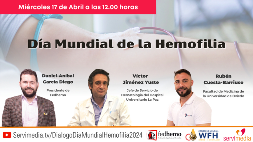 La Federación Española de Hemofilia (FEDHEMO), entidad perteneciente a COCEMFE, celebrará mañana, Día Mundial de la Hemofilia, un encuentro en Servimedia en el que participarán el presidente de la entidad, Daniel-Aníbal García, Víctor Jiménez Yuste, jefe de Servicio de Hematología del Hospital Universitario La Paz, y Rubén Cuesta-Barriuso, de la Facultad de Medicina de la Universidad de Oviedo.