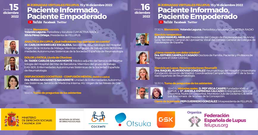 La Federación Española del Lupus (FELUPUS), entidad perteneciente a COCEMFE, celebrará los próximo 15 y 16 de diciembre sus III Jornadas Virtuales.