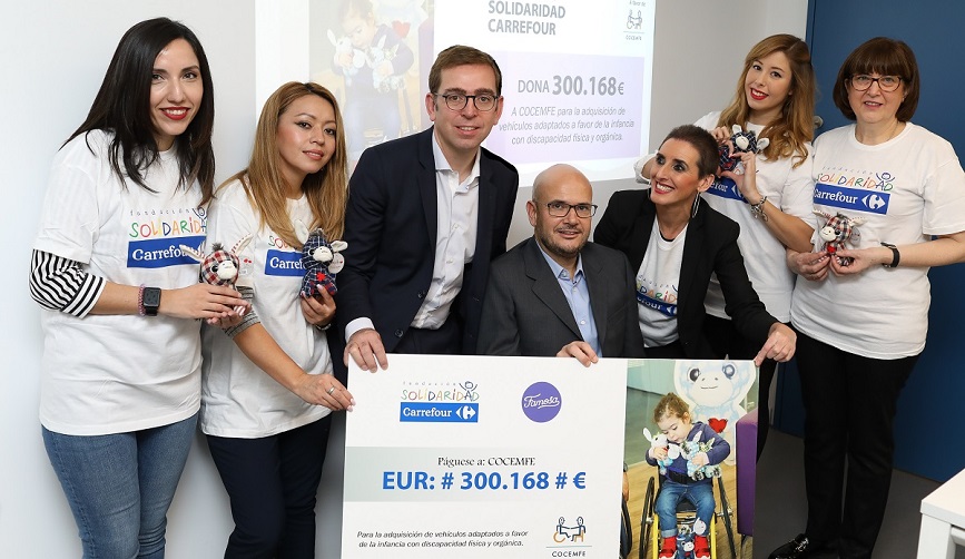 Fundación Solidaridad Carrefour dona 300.168 euros a la Confederación Española de Personas con Discapacidad Física y Orgánica (COCEMFE) para la adquisición de seis vehículos adaptados a favor de cientos de menores con discapacidad, a quienes atiende la entidad a través de su movimiento asociativo.