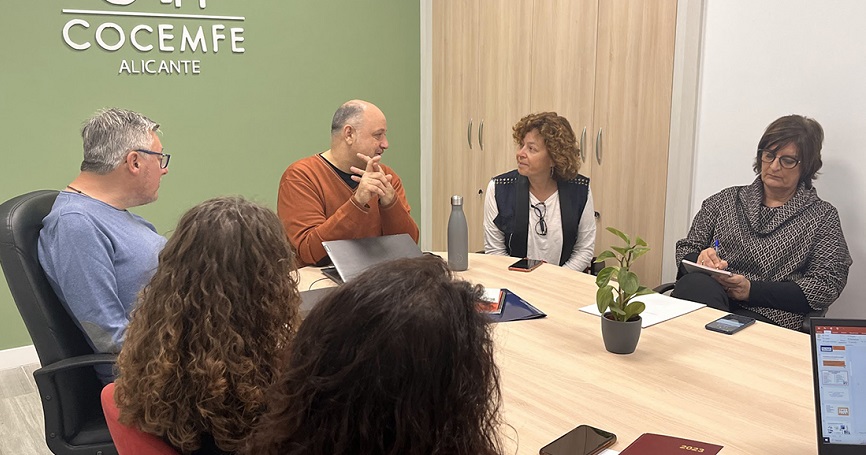 La consellera de Innovación, Universidades, Ciencia y Sociedad Digital de la Generalitat Valenciana, Josefina Bueno, ha visitado esta mañana la sede de COCEMFE Alicante, la Federación de Asociaciones de Personas con Discapacidad Física y Orgánica de la provincia de Alicante, manteniendo un encuentro con Antonio Ruescas, presidente de la entidad, Cristina Valdés, coordinadora, Fernando Egido y Cristina Esclapés, tesorero y vocal de la misma.