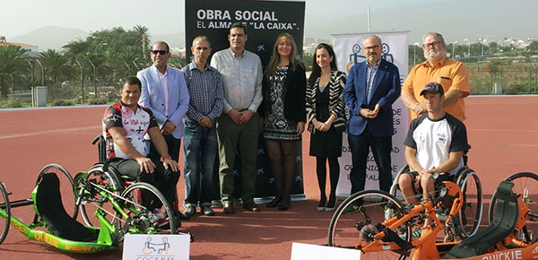 La Federación de Asociaciones de Personas con Discapacidad Física y Orgánica de las Palmas (COCEMFE Las Palmas) presentó con motivo del Día Internacional y Europeo de las Personas con Discapacidad el material deportivo adaptado para personas con discapacidad, financiado por la Obra Social “la Caixa”, para la escuela de iniciación deportiva así como para jornadas formativas sobre discapacidad y deporte. El material adquirido han sido dos sillas de ciclismo, una de atletismo y diez sillas de ruedas estándar.