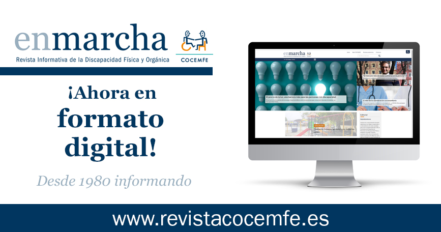 Esta es la principal novedad y revolución del número 135. Con el objetivo de adaptarse a un mundo accesible y multicanal, los nuevos contenidos de ‘En Marcha’, en formato íntegramente digital, podrán visualizarse desde el portal web www.revistacocemfe.es, totalmente accesible, que facilita la navegación y lectura desde diferentes dispositivos y, además, permite personalizar la vista a las necesidades de cada persona en cuestiones como el contraste, tamaño de textos, estilo de fuente y espaciado entre líneas.