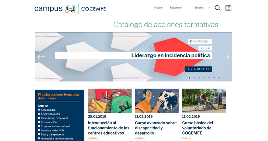 La Confederación Española de Personas con Discapacidad Física y Orgánica (COCEMFE) lanza Campus COCEMFE, una nueva plataforma de formación dirigida a la formación de líderes del movimiento asociativo, y a la mejora profesional del personal técnico, voluntario y directivo de sus organizaciones y que permitirá también la formación profesional para el empleo, la adquisición de conocimientos y habilidades transversales y el empoderamiento de las personas con discapacidad.