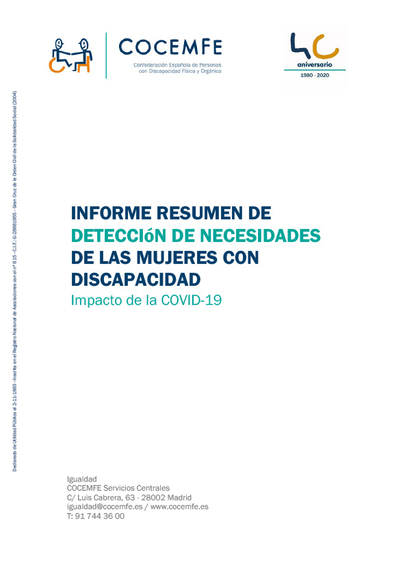 Informe de detección de necesidades de las mujeres con discapacidad. Impacto de la COVID-19
