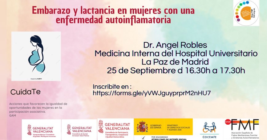 La Asociación Española de Fiebre Mediterránea Familiar y Síndromes Autoinflamatorios (STOP FMF), entidad perteneciente a COCEMFE, pone en marcha una nueva charla informativa titulada “Embarazo y lactancia en mujeres con una enfermedad autoinflamatoria.”