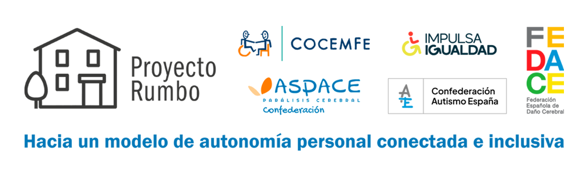 El ‘Proyecto RUMBO: hacia un modelo de autonomía personal conectada e inclusiva’ es una iniciativa colaborativa desarrollada entre distintas confederaciones del Tercer Sector de la discapacidad (COCEMFE, ASPACE, PREDIF, FEDACE y AUTISMO ESPAÑA). El objetivo es impulsar el diseño de modelos innovadores de apoyo a la autonomía personal y la vida independiente de personas con discapacidad, especialmente aquellas con mayores necesidades de apoyos, mediante la combinación de servicios y recursos que puedan facilitar una forma de vida inclusiva en la sociedad en condiciones de seguridad, accesibilidad y bienestar.